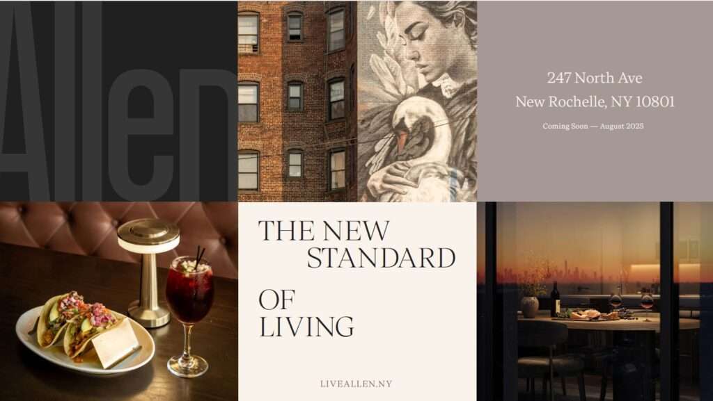 Set against sweeping views of the Long Island Sound and just minutes from Manhattan, ALLEN brings a new energy to upscale living in New Rochelle, and our goal was to match that ambition with a brand that feels elevated yet approachable, fresh yet timeless. The identity blends clean urban lines with warmth and ease, capturing the spirit of a place designed to feel like home from the start, and the creative rollout touched every element — from digital illustration, brand identity, and foundational messaging to a cinematic film and full web experience that reflects the style, comfort, and convenience at the heart of this project. Every detail was built to move with purpose and presence, inviting residents in through typography, tone, motion, and stillness, all coming together to signal not just a new address but the beginning of a bold new era for New Roc City.